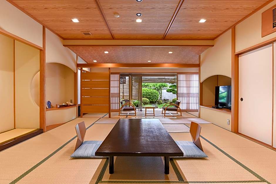 Guests will have a special experience as this double room features a private open-air bath. The spacious double room offers air conditioning, tatami, as well as a private bathroom featuring a bath and a shower. The double room provides Smartphone, a seating area, an electric kettle, yukata and a flat-screen TV. The unit offers 2 beds.