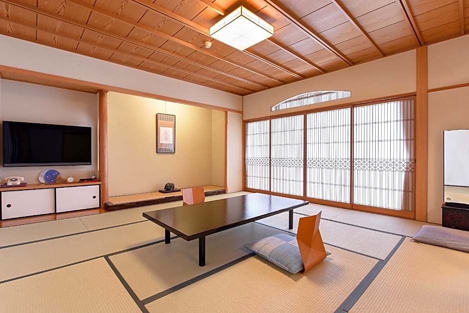 This triple room's standout feature is the private open-air bath. The spacious triple room offers air conditioning, tatami, as well as a private bathroom featuring a bath and a shower. The triple room features Smartphone, a seating area, an electric kettle, yukata and a flat-screen TV. The unit offers 3 futons.